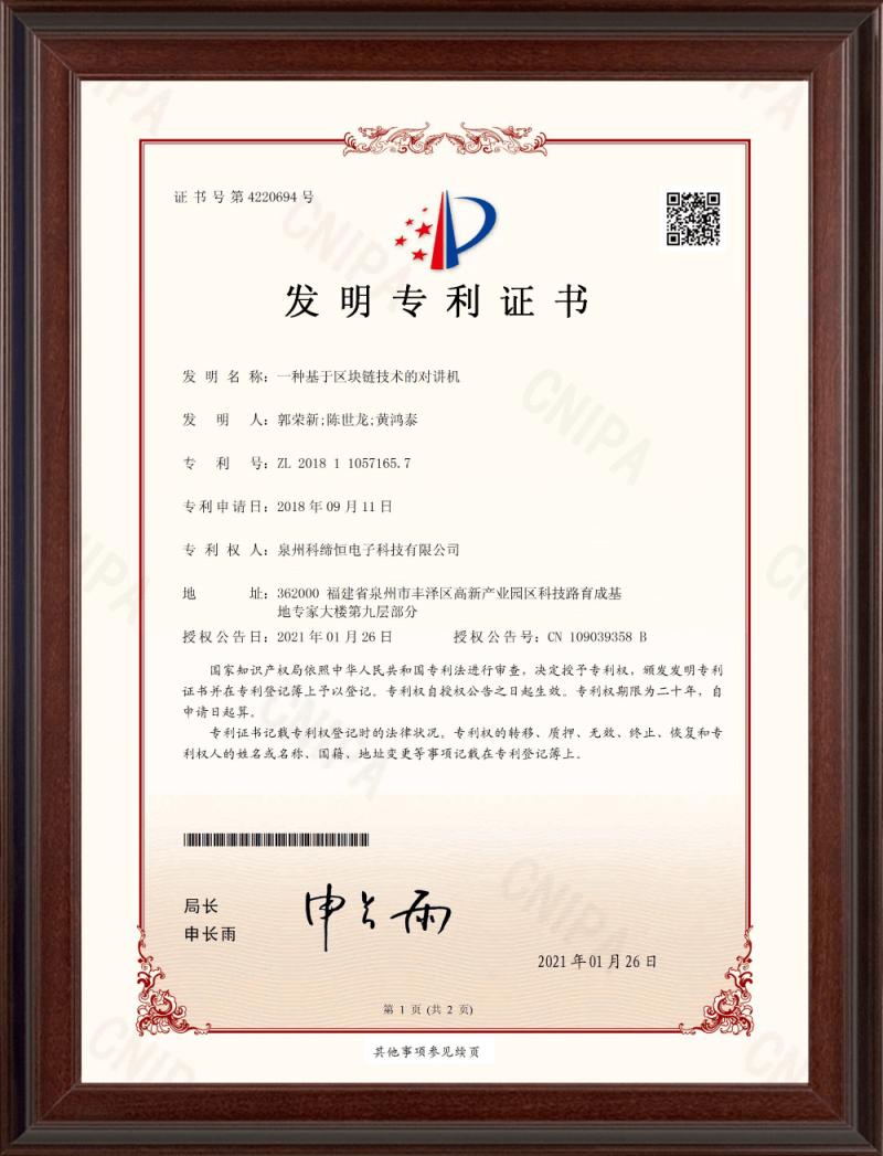 發明專利(一種基于區塊鏈技術的對講機)